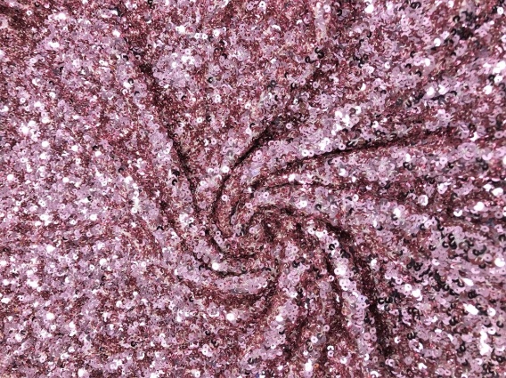 Zastosowanie materiału cekinowego – gęste cekiny brudny róż